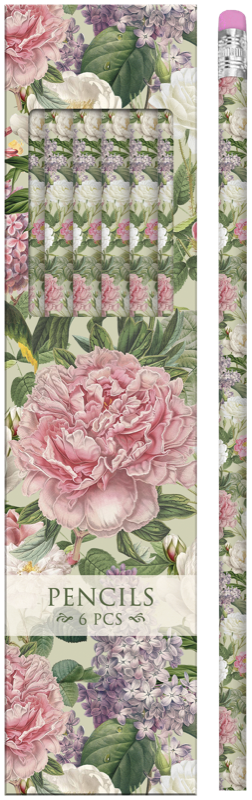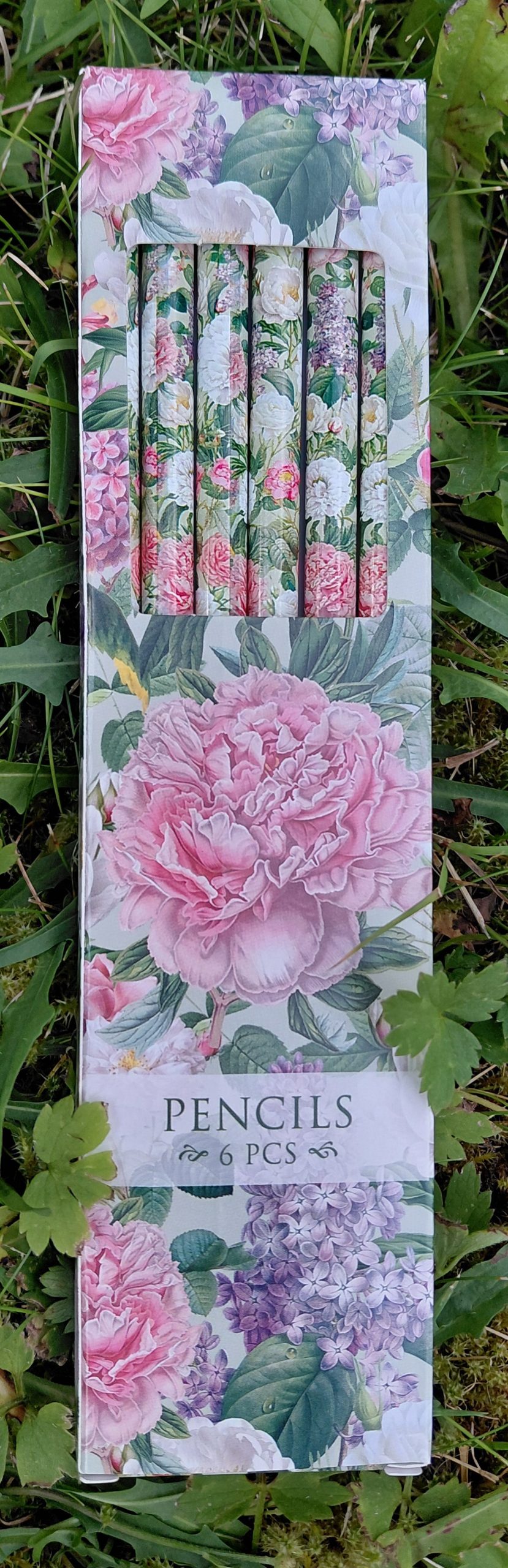 Lyijykynä pyyhekumilla,paketissa 6 kpl kyniä.Lyijykynissä kukkien kuvia,PIONIT & RUUSUT.Sköna Ting.