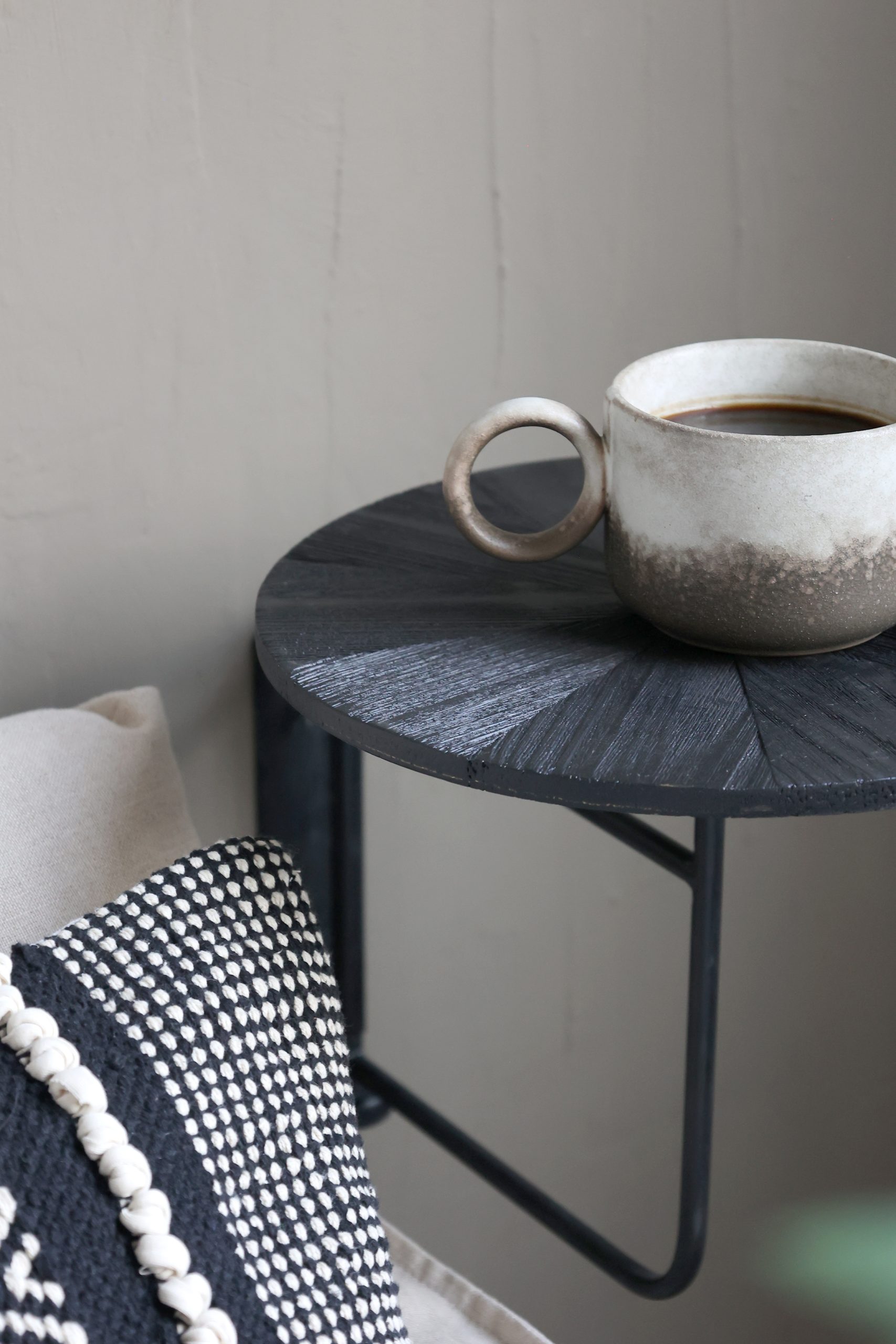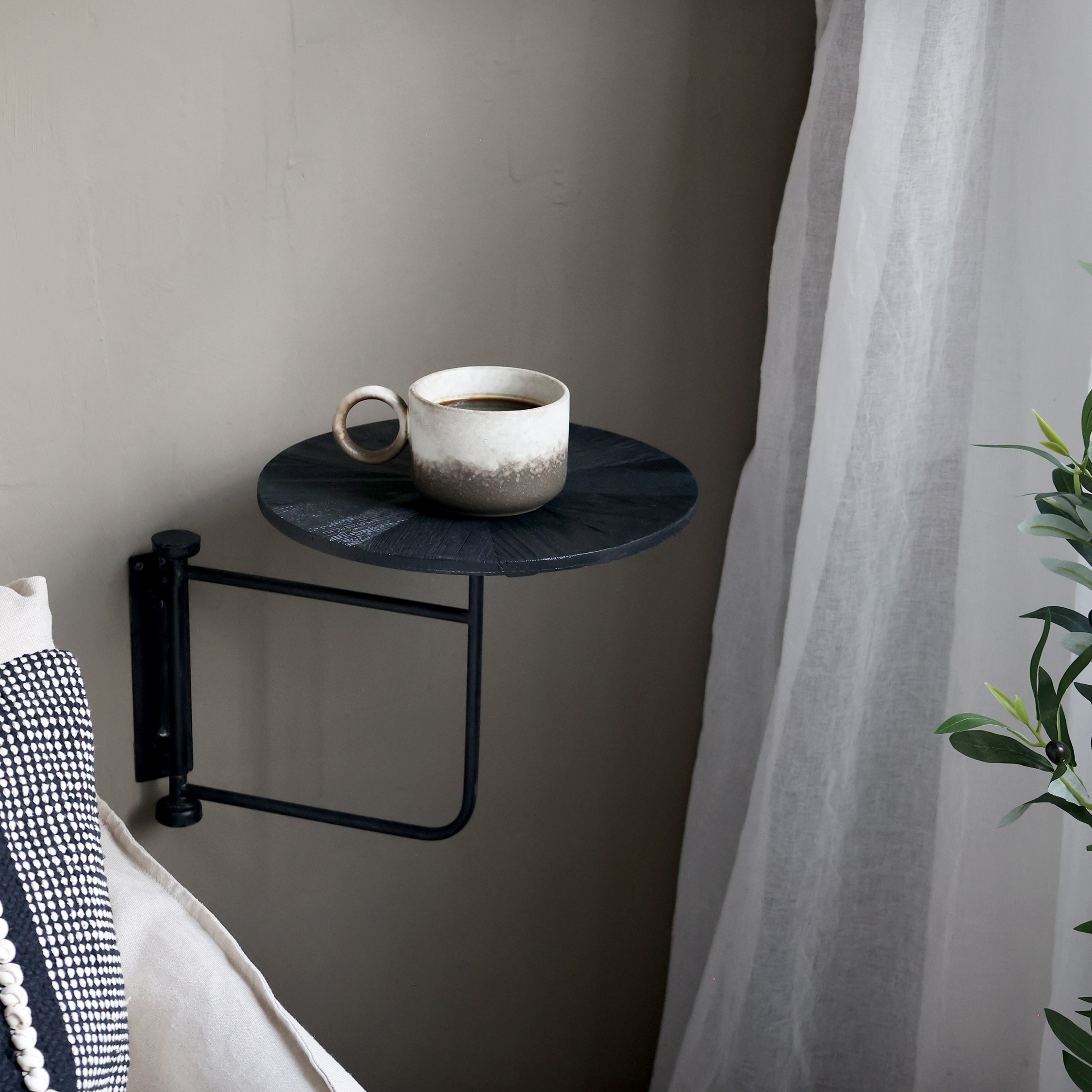 Hiilenmusta seinäpöytä rautaa ja puuta.Tämä rustiikkinen seinäpöytä sopii niin olohuoneeseen kuin makuuhuoneeseenkin. Pöydän koko on 40.5/30 cm.Tämä ihanuus on Chic Antiquelta.